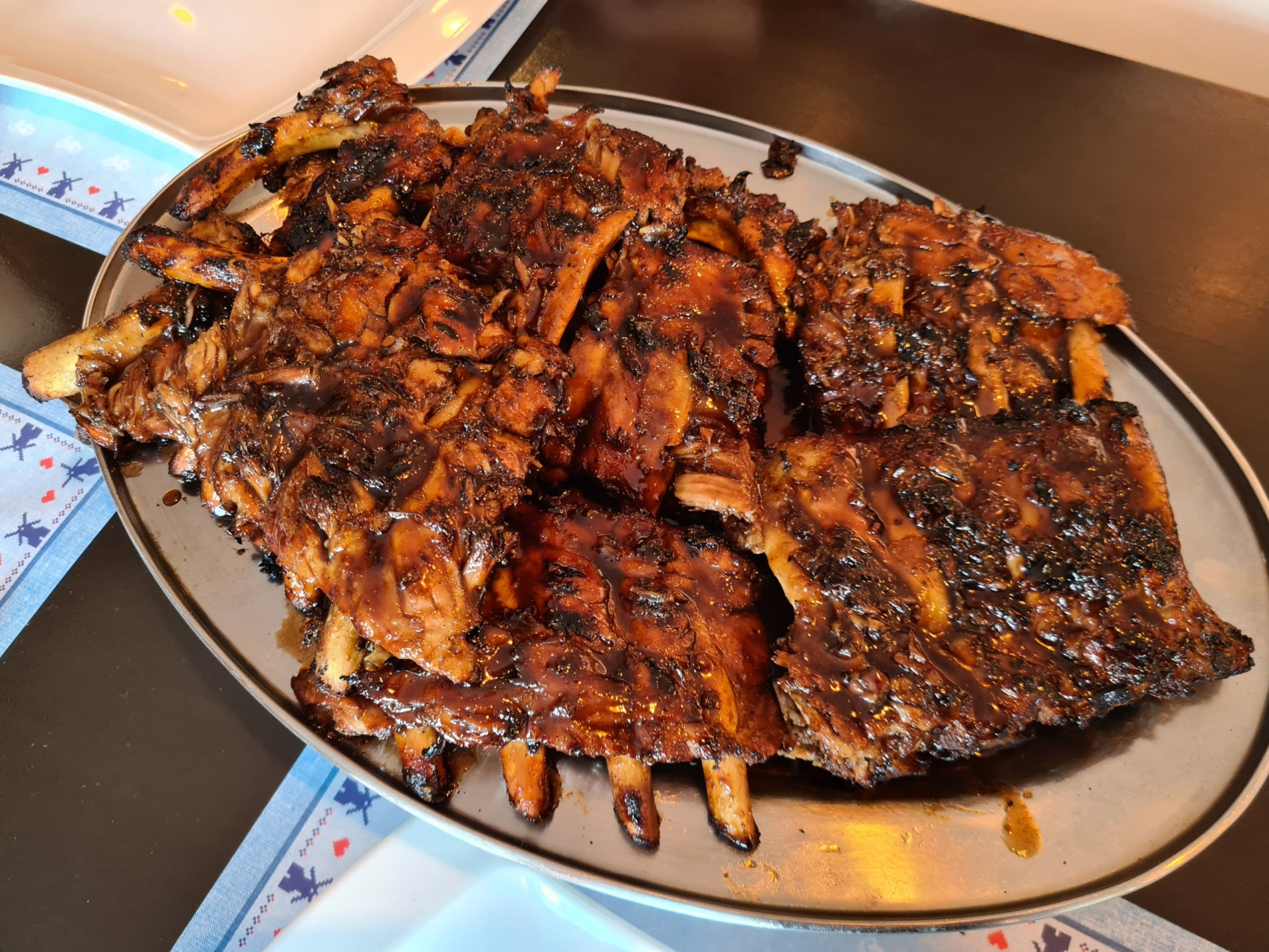 De spareribs zijn bijzonder lekker gekruid. Ook het stukje spareribs wat wij aangeboden kregen voordat het de lavagrill op ging smaakte al bijzonder lekker. Het wordt nog een lastige klus, want ook hier zijn de spareribs echt waanzinnig lekker!